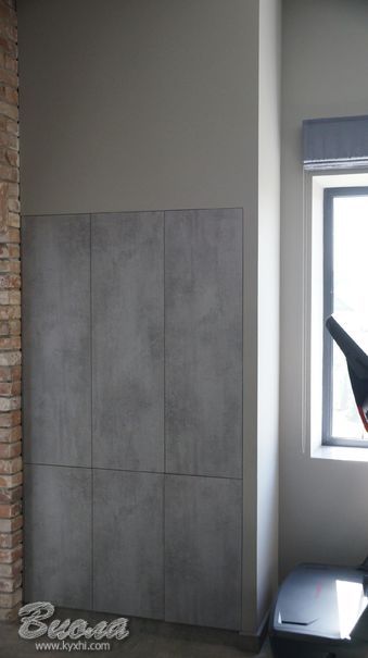 1. фасади вітальні зони - ДСП преміум сегменту виробництва CLEAF (Клеаф) Бетон Чикаго.
